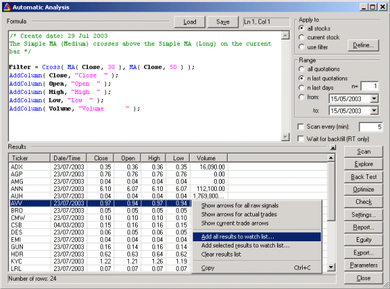button . This will launch the Amibroker automatic analysis